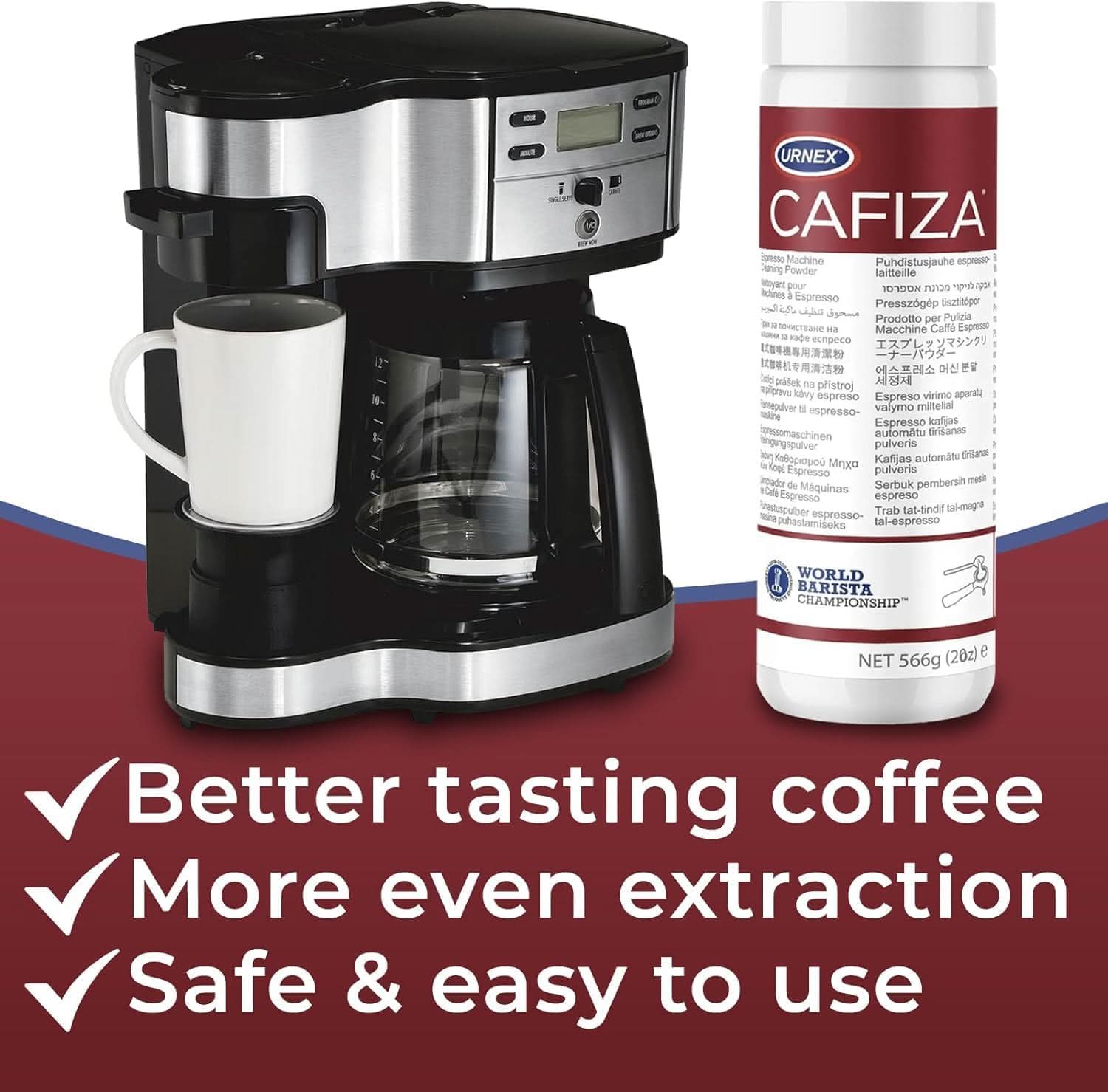 Product Description: Elevate your coffee and espresso experience with the Urnex Coffee & Espresso Care Kit. This all-in-one maintenance kit includes Urnex's renowned Cafiza Cleaning Powder (566g) and Dezcal Scale Remover (900g), offering comprehensive care for all brewing machines. Say goodbye to stubborn coffee residue and mineral buildup, as this kit ensures your machine functions at its best, delivering pristine cups of coffee and espresso with every brew. Whether you own a traditional espresso machine, a single-serve pod machine, or a drip coffee maker, this care kit is your go-to solution for maintaining optimal performance and ensuring your machine looks as good as new.
