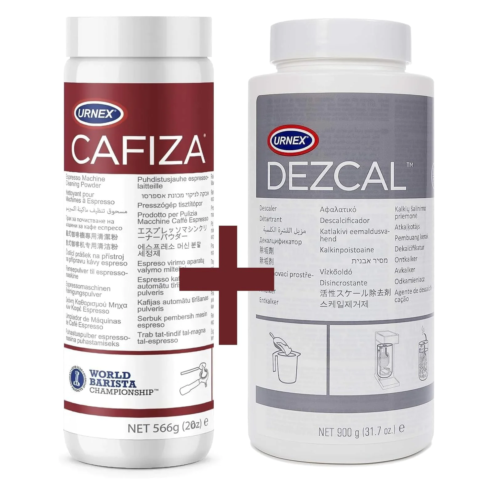 Urnex Cafiza Cleaning Powder & Dezcal Scale Remover Coffee & Espresso Care Kit Pack of 2