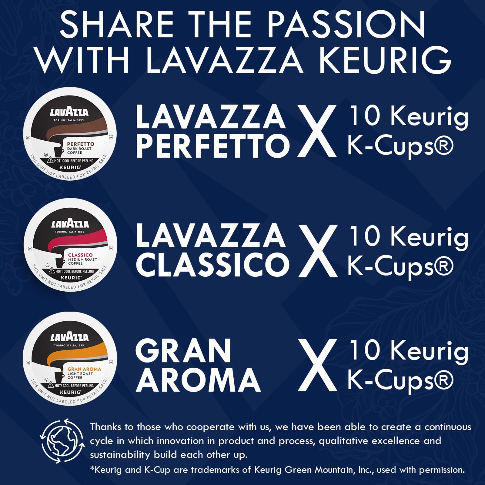 Lavazza K - Cups Variety Mix of 30 Coffee Pods - Classico, Perfetto Gran Aroma, 10 Capsules Each