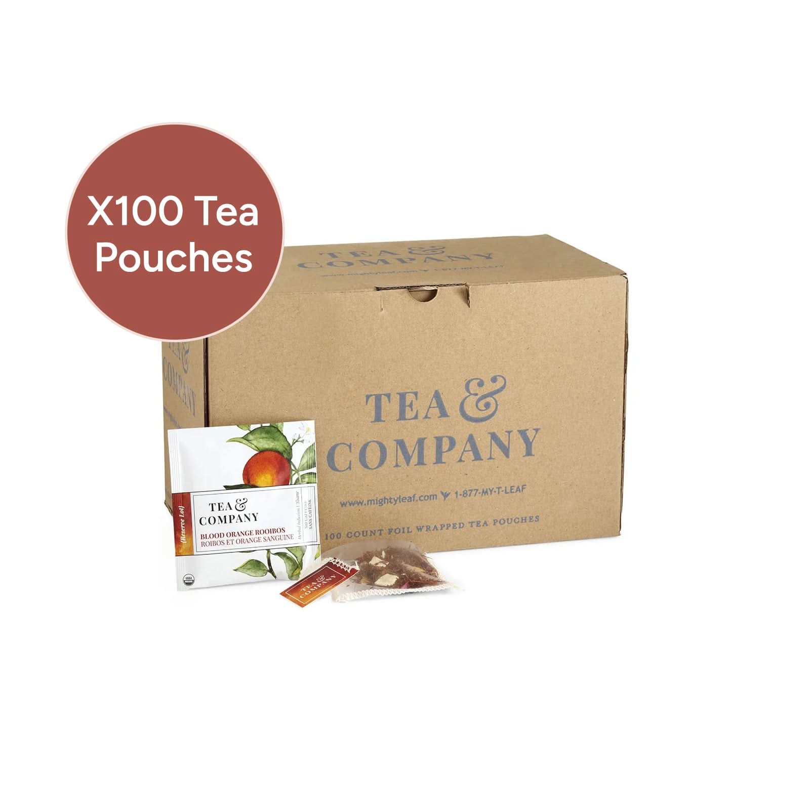 - 100 silken stitched tea bags of Organic Blood Orange Rooibos from Tea & Company an ultra premium Mighty Leaf Tea line