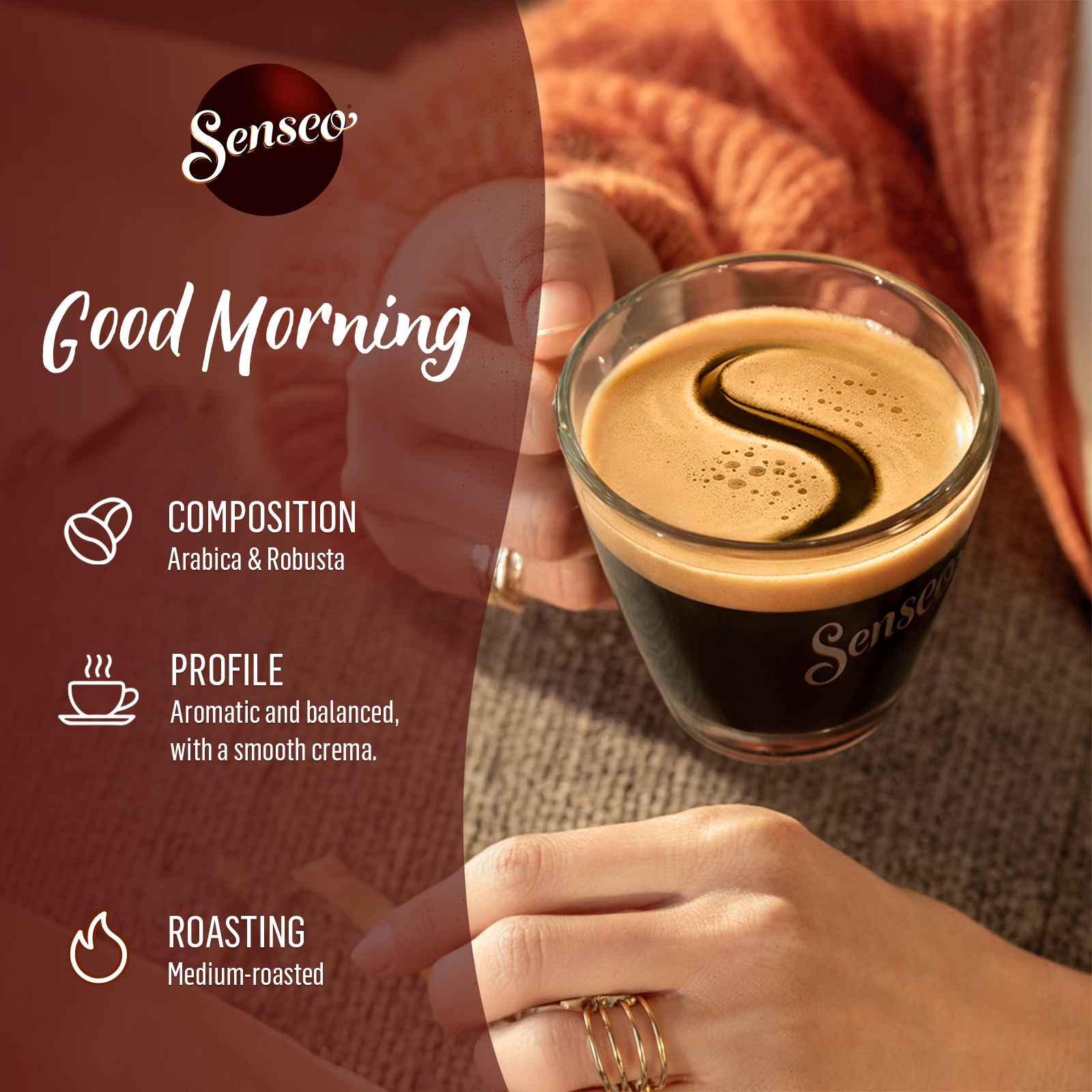 Start the day with a powerful cup of coffee made with Senseo Good Morning XL Strong & Intensive Coffee Pods, specially created for coffee lovers who want a bold, full-bodied breakfast blend in a larger mug. Each soft pod is packed with intensely roasted ground coffee to deliver a strong aroma, rich flavor, and satisfying strength that stands out from standard coffee pods.